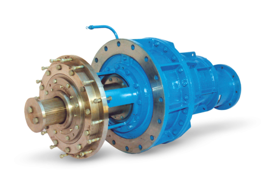 The planetary gear units normally have four-stage reductions out of which the first stage is designed as helical or bevel pair, and the remaining stages according to planetary gear systems.